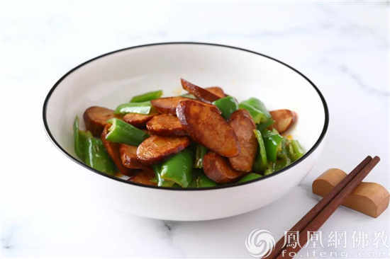 青椒川味素腊肠(图片来源:凤凰网佛教 摄影:齐善食品)