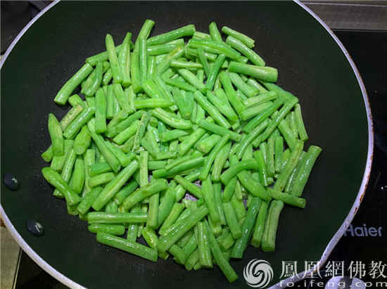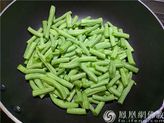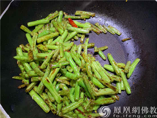 干煸豆角过程图(图片来源:凤凰网佛教 摄影:李婷)