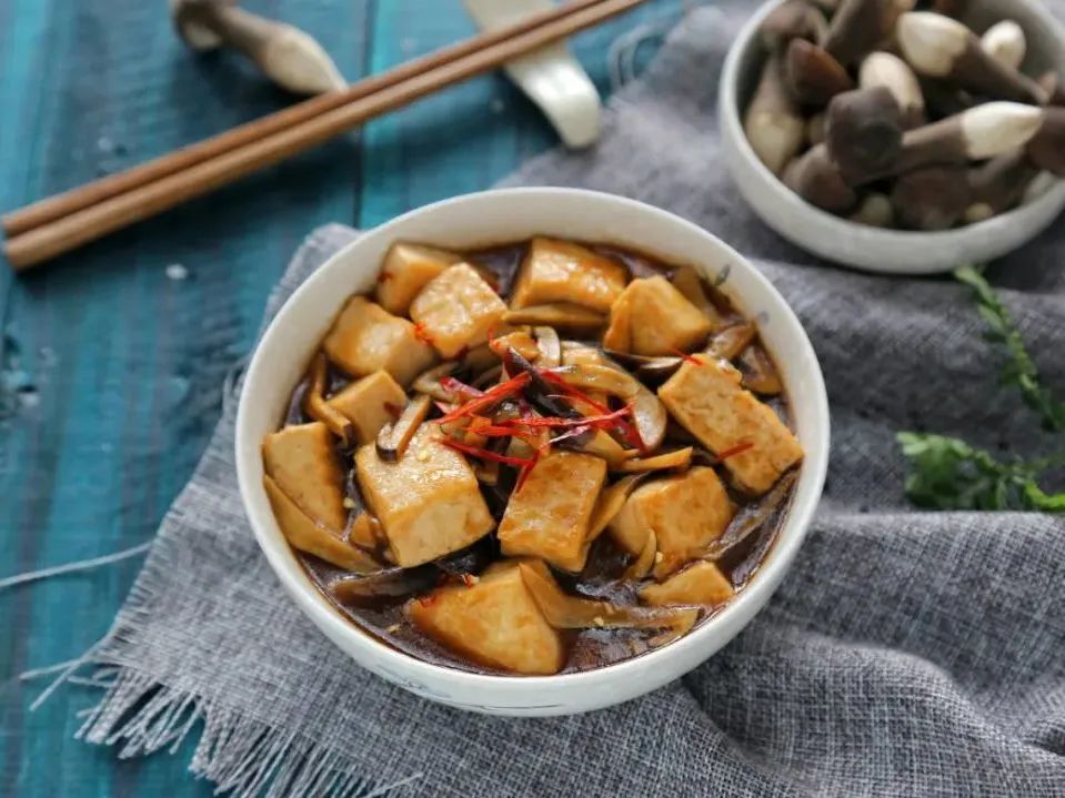 北豆腐2片、胡椒粉1克、鸡枞菌50克、酱油10克、老抽5克、玉米淀粉10克、姜末、盐适量