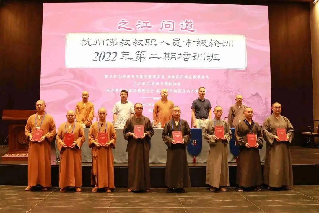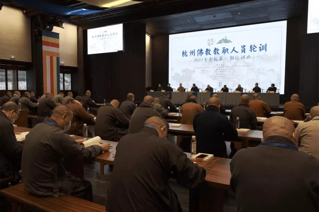 2022年3月9日,浙江省民宗委发布了《浙江省宗教教职人员轮训方案》。6月10日,浙江省佛教协会印发了《关于开展浙江省佛教教职人员2022年市、县级轮训工作的通知》。为深入学习宣传、全面贯彻落实党的二十大精神,以及全国、省市宗教工作会议精神,落实我省宗教“十百千万”人才培育工程,杭州市民宗局指导市佛协结合打造“之江问道”宗教中国化品牌,在全省率先而动,精心组织开展了市、区两级佛教教职人员轮训活动。