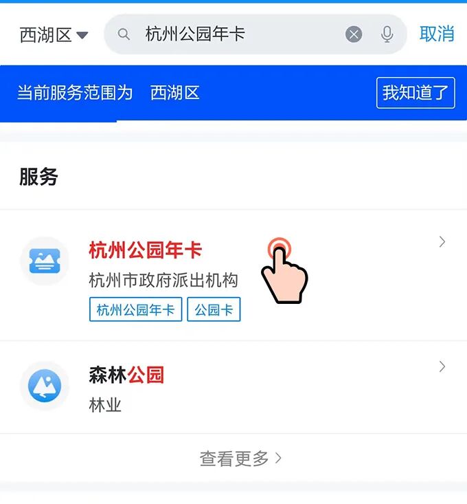 打开浙里办——搜索“杭州公园年卡”,进入杭州公园年卡应用界面。