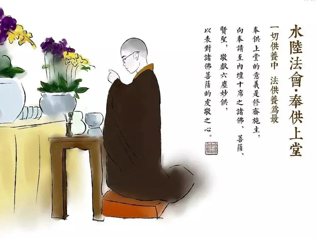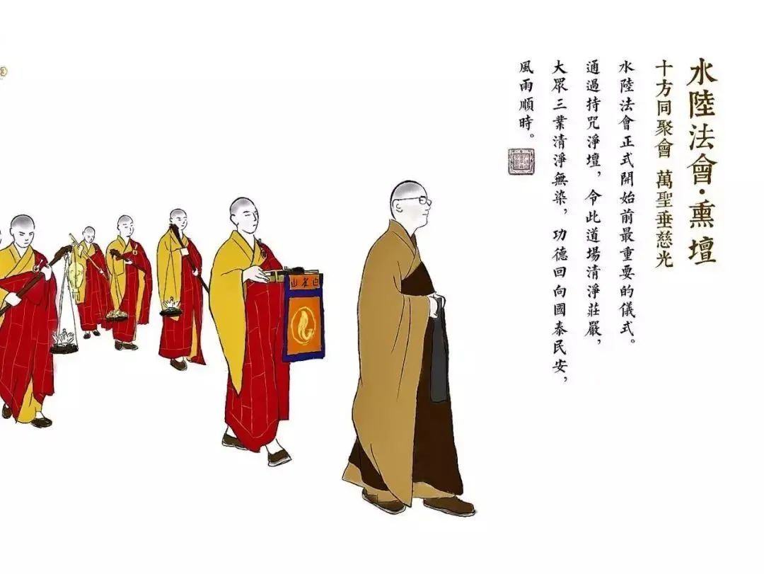 水陆法会基本上将佛教中积累福报、净除障碍、往生超度的各种佛事,集中在七天的时间里一起举行,功德殊胜广大。