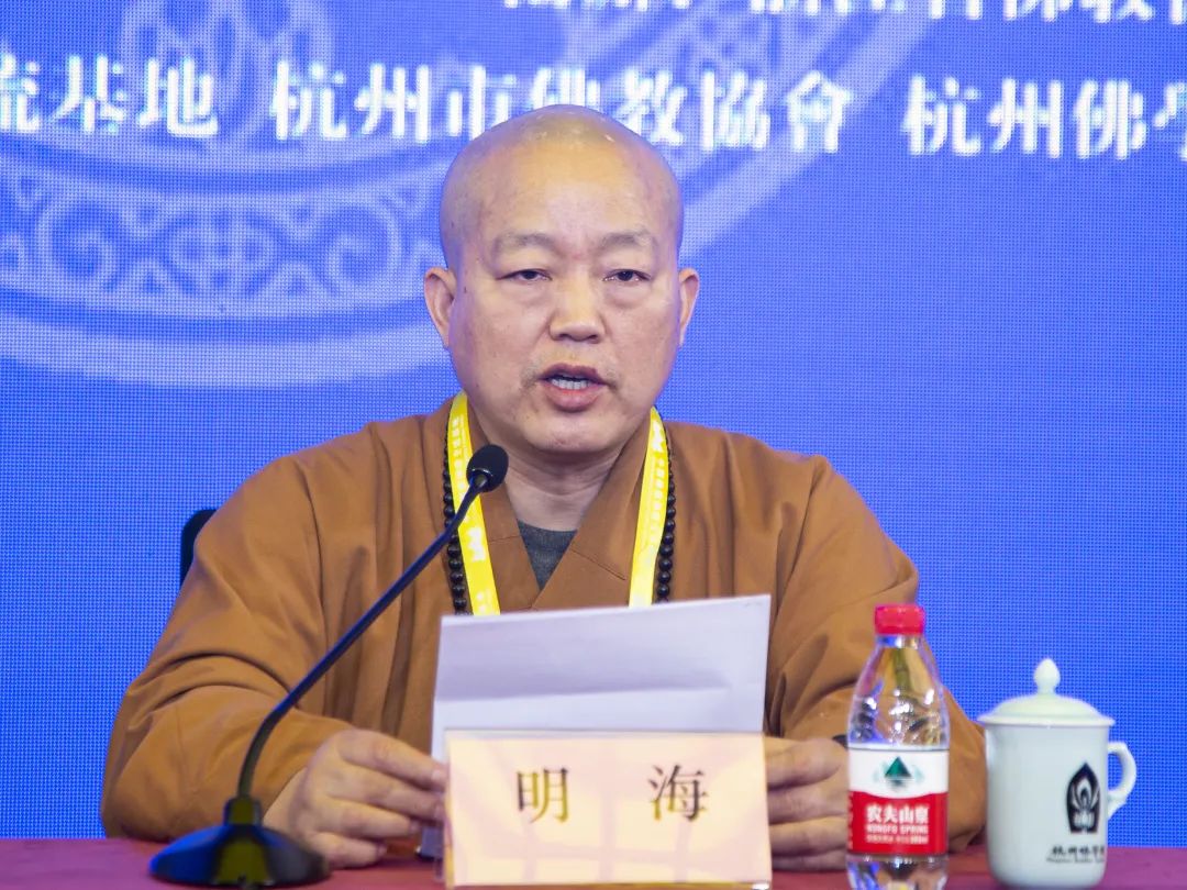 ▲中国佛教协会副会长明海法师在闭幕式上作总结讲话