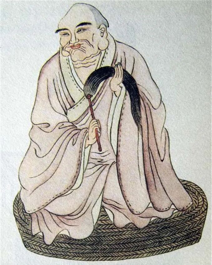 尊者法相所现为结跏趺坐,面露笑容,双手持拂子。