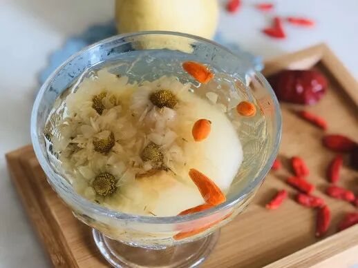 雪梨2个、菊花100克、冰糖少许、枸杞少许