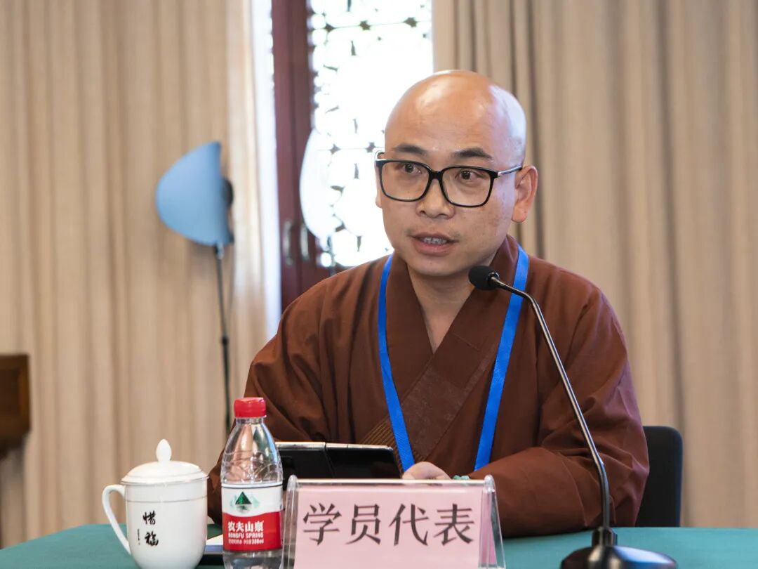 ▲学员代表达果法师发表感言