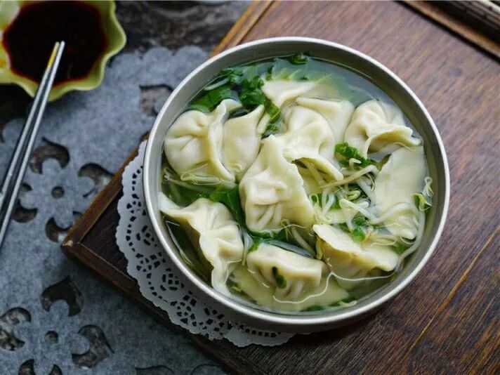 饺子皮600克、素馅500克、豆芽1份、青菜1份、盐适量