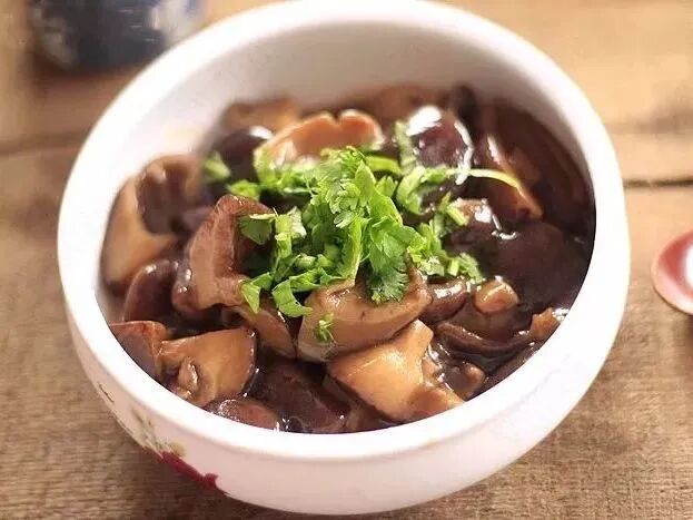 3、锅中倒入油烧热至6成熟,加入香菇翻炒30秒,加入盐继续翻炒,加适量酱油