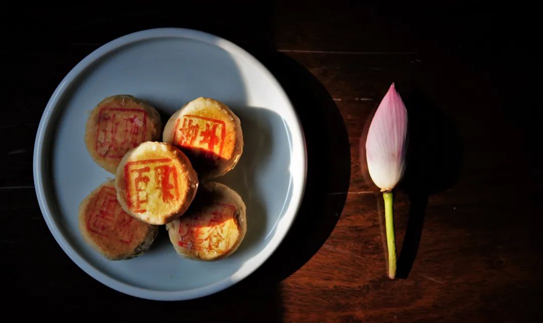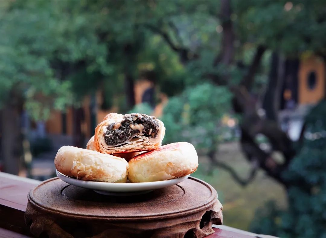 10、所有面团都处理好以后,放在烤盘上,静置20分钟以后再烘烤。烤箱预热至上下火160℃,将月饼放入烤箱中层,烘烤30分钟左右,直到饼皮的层次完全舒展开来,注意观察表面,不要上色过深。