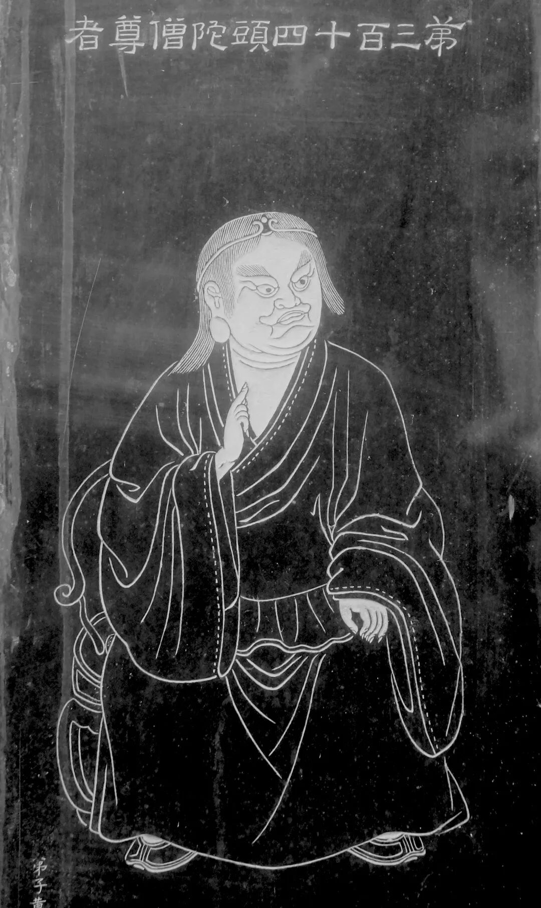 五百罗汉第叁佰壹拾肆尊头陀僧尊者,即唐代镇州龙兴寺释头陀。头陀,意为抖擞,抖擞能去尘垢,对衣、食、住等弃其贪着,以修炼身心。