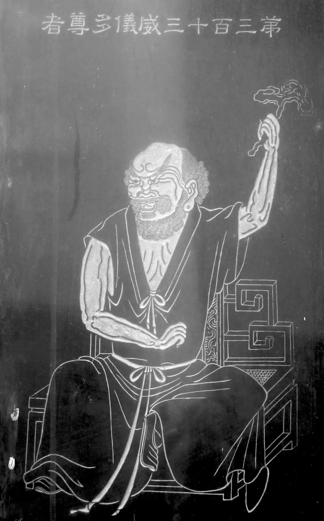 五百罗汉第叁佰壹拾叁尊威仪多尊者,威仪,指威严之态度,谓起居动作皆有威德有仪则,即习称之行、住、坐、卧四威仪。
