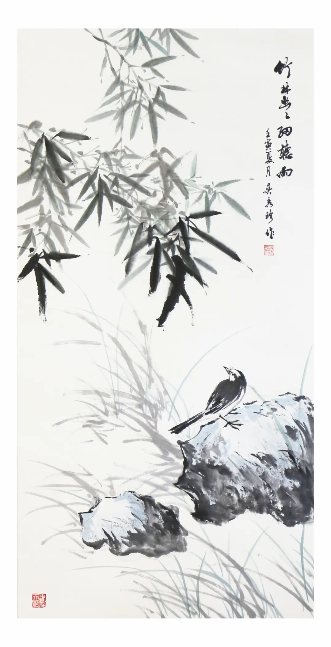 123·绘画·《竹林幽之细听雨》·吴秀珍