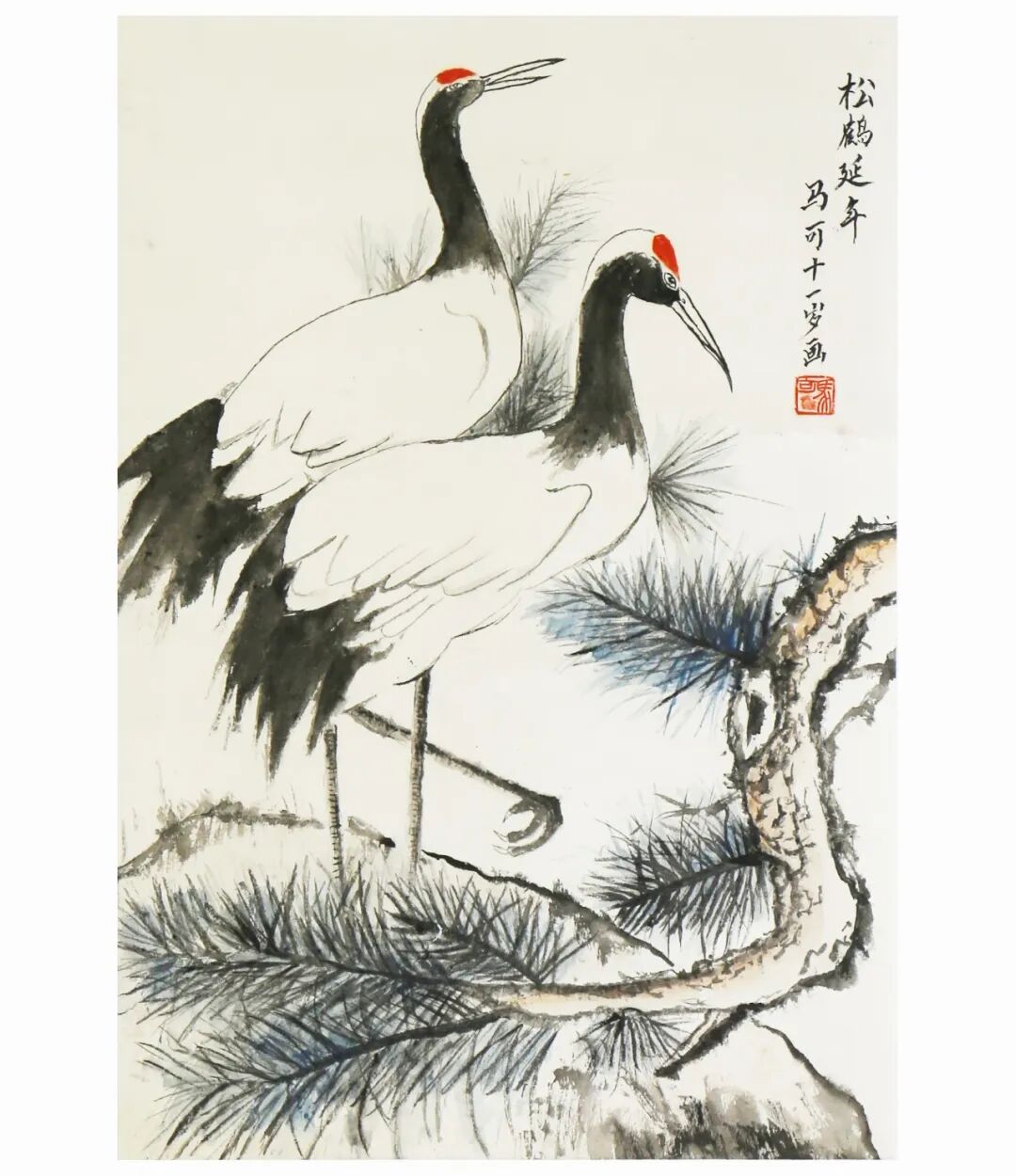 157·紫阳街道·水墨画·《松鹤延年》·马克(11岁)
