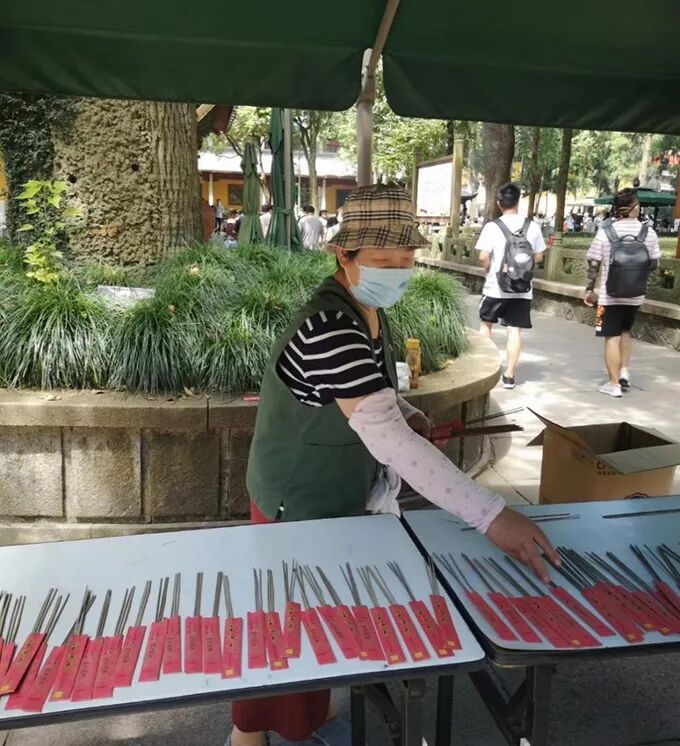 记得我带妈妈第一次来灵隐寺做志工,经过岗前培训后,她的第一次服务岗位是发香。我和妈妈说,别小看发香这个工作,这不仅是寺院的一个窗口岗位,这里面还涵盖了菩萨六度的修行: