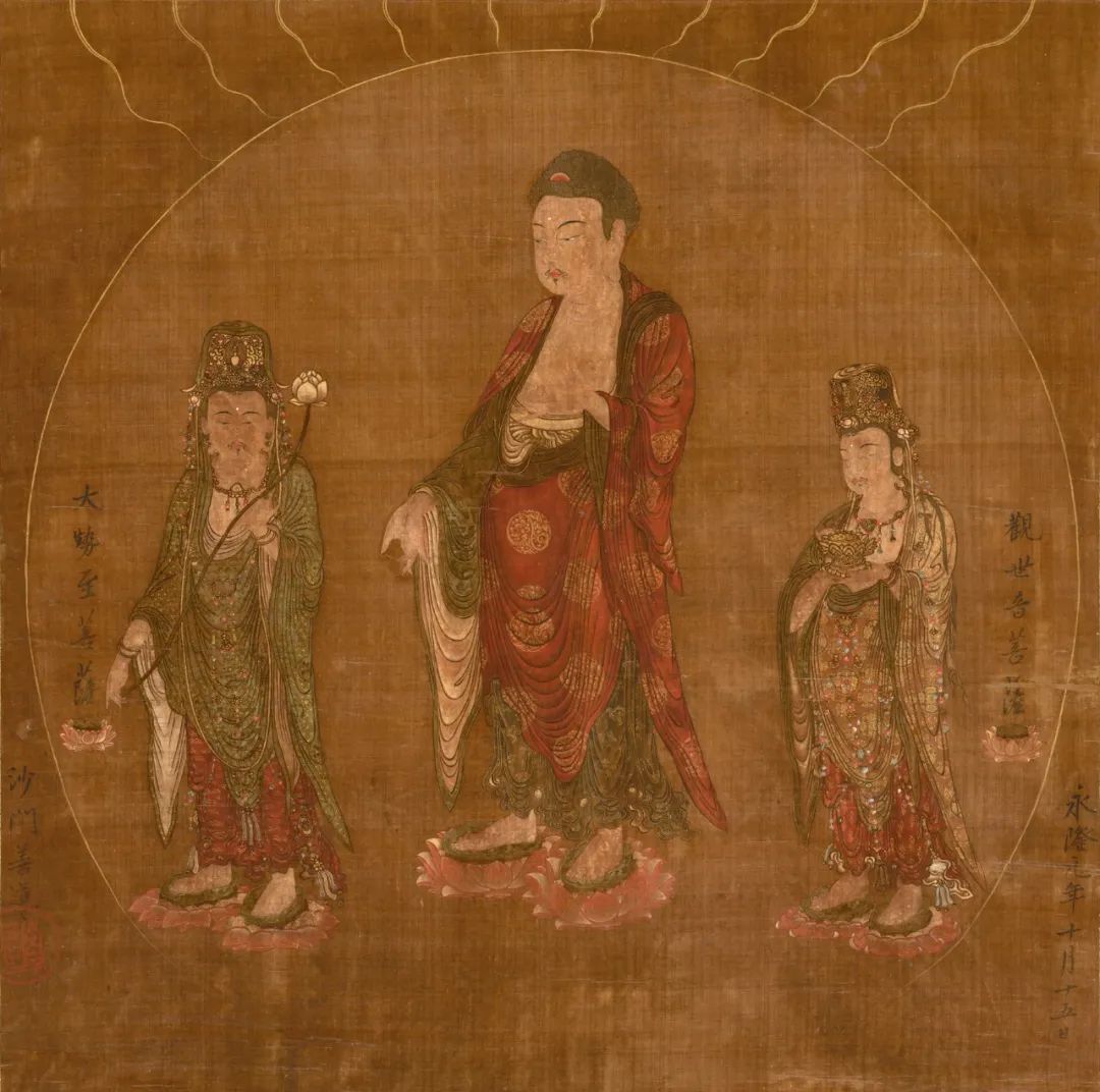 赏析|一幅与众不同的南宋佛画:西方三圣接引图
