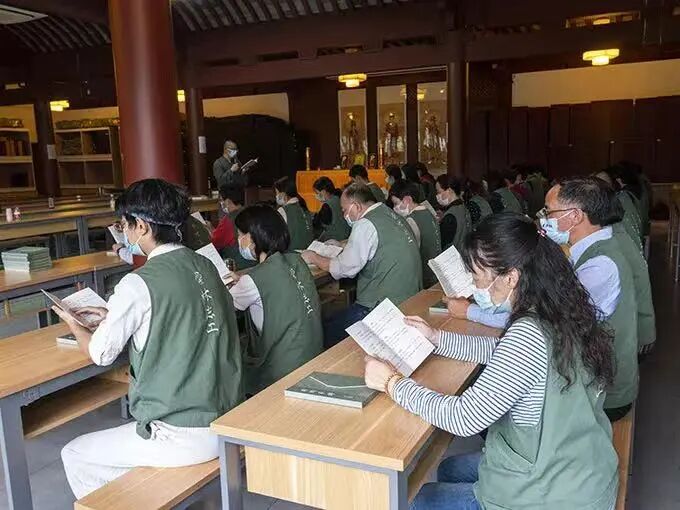 5月18日,首批《共修手册》发放到志工手中。《共修手册》,涵盖了志工入寺礼仪、共修、自修仪轨和过堂唱诵等内容,指导志工精进修学,提升志工的修学素养和服务水平。同时,《志工团日常组招募管理制度》、《志工团专业组招募管理制度》、《志工违纪管理制度》、《共修手册发放操作流程》、《志工生日关怀活动方案》等,通过集体讨论,颁布实施。