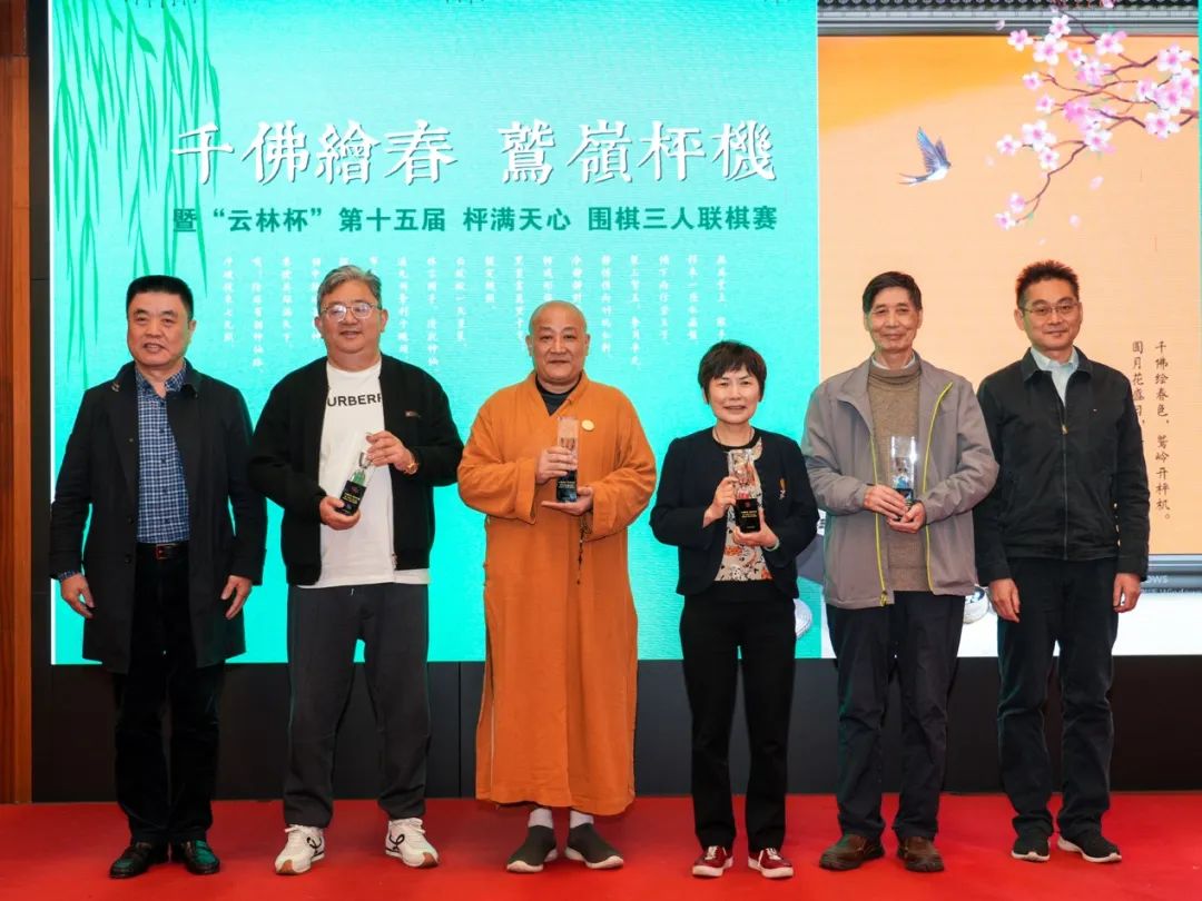3月26日下午,“千佛绘春 鹫岭枰机 暨“云林杯”第十五届枰满天心围棋三人联棋赛”在杭州灵隐寺圆满闭幕,16支棋队64名棋手经过四轮的坐隐手谈,南无众王佛队获得第一名。