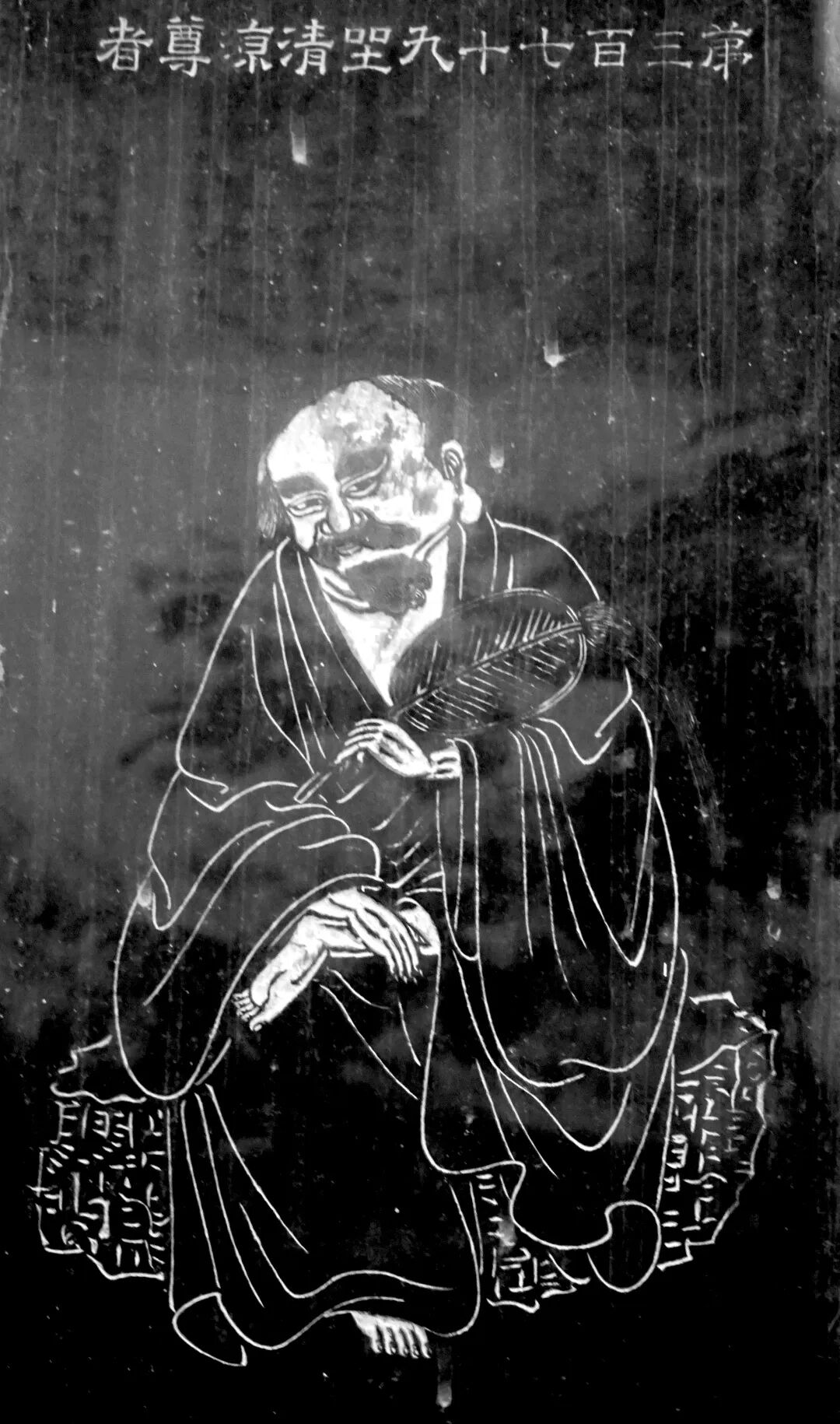 五百罗汉第叁佰柒拾玖尊坐清凉尊者,即澄观(738-839),唐代僧,俗姓夏候,字大休,华严宗四祖,号清凉国师、华严菩萨、华严疏主。祖籍越州山阴(浙江绍兴人)。