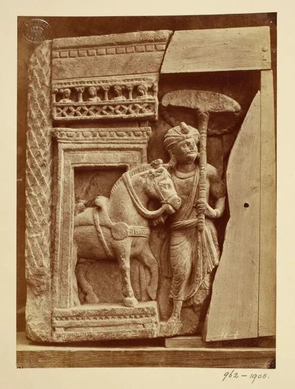 太子跨上白马,取道北门逾墙而出,车匿了紧随其后。佛经上说,马初举步,大地震动,四大天王捧承马足,梵天帝释执幡引路。