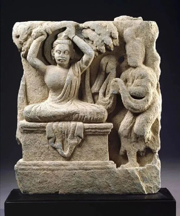马夫车匿见此情形,知不能挽回,只好牵马拜辞,寻路回宫。悉达多太子则身披袈裟,安详徐步地开始了自己寻师访道的路程……