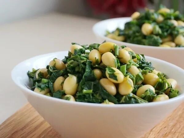 4、香椿切碎,放入黄豆中,加盐、醋、香油,搅拌均匀即可