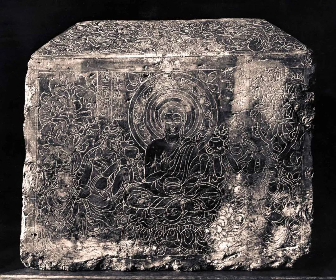 七世纪 唐代线刻石雕尺寸:50.8×85.72 cm美国宾夕法尼亚大学博物馆收藏这是一块唐初七世纪四方形线刻...